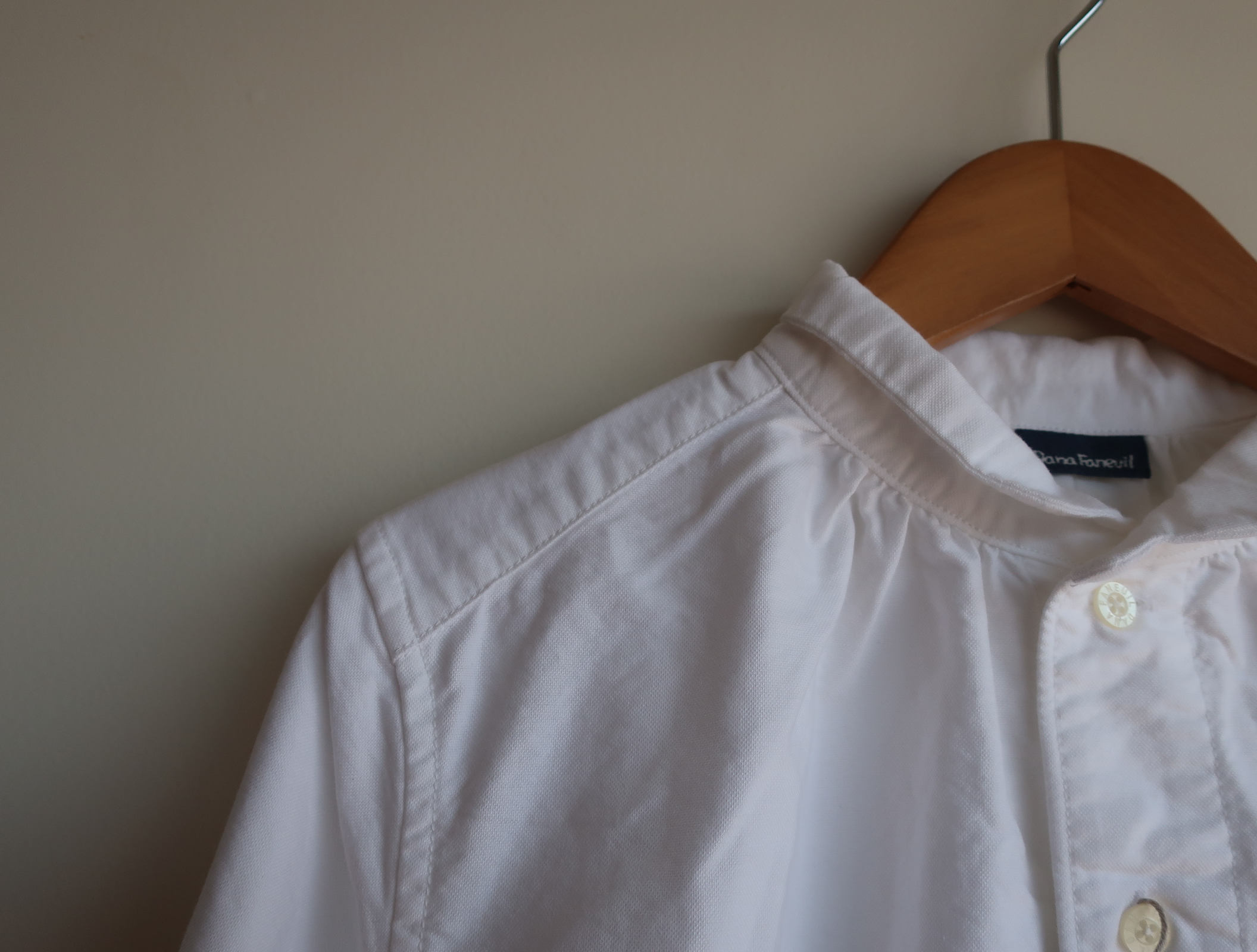 Dana Faneuil エアタンオックスワンピースカラーシャツ(sold out) 2025.08.162025.09.21 ホワイト ブラウン 9,800円(税込10,780円) col.ホワイトsold/ブラウン(新色)sold 綿100% 幅55cm 丈62cm D6323122定番 ご注文