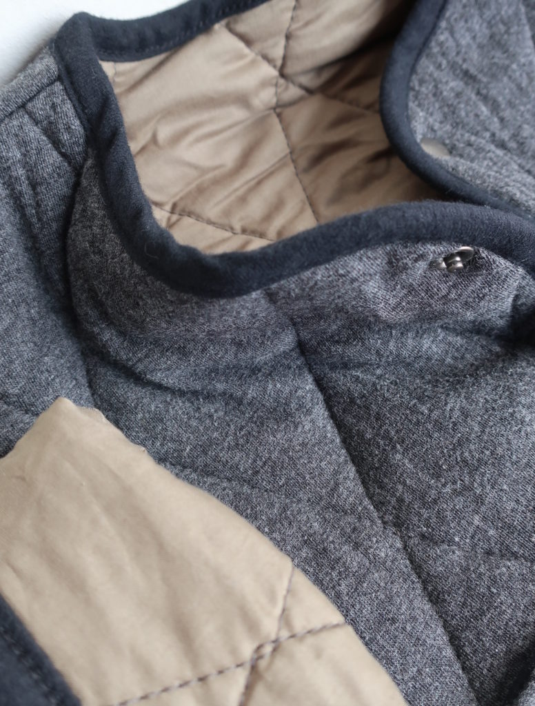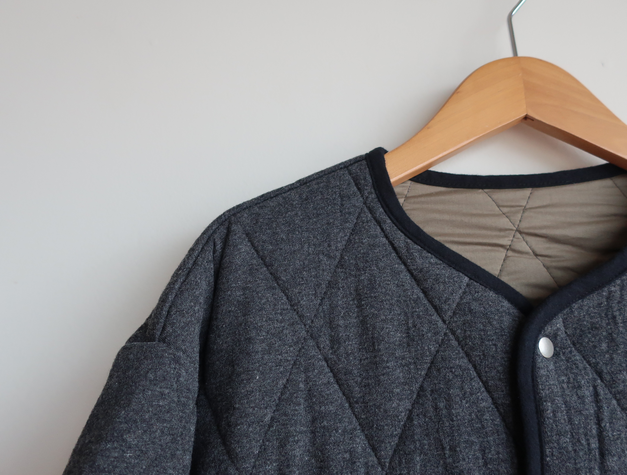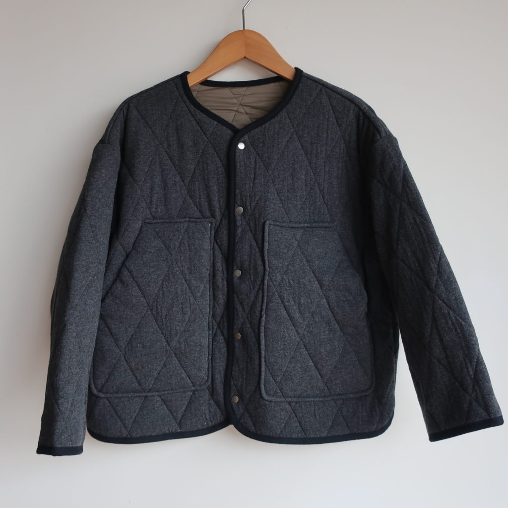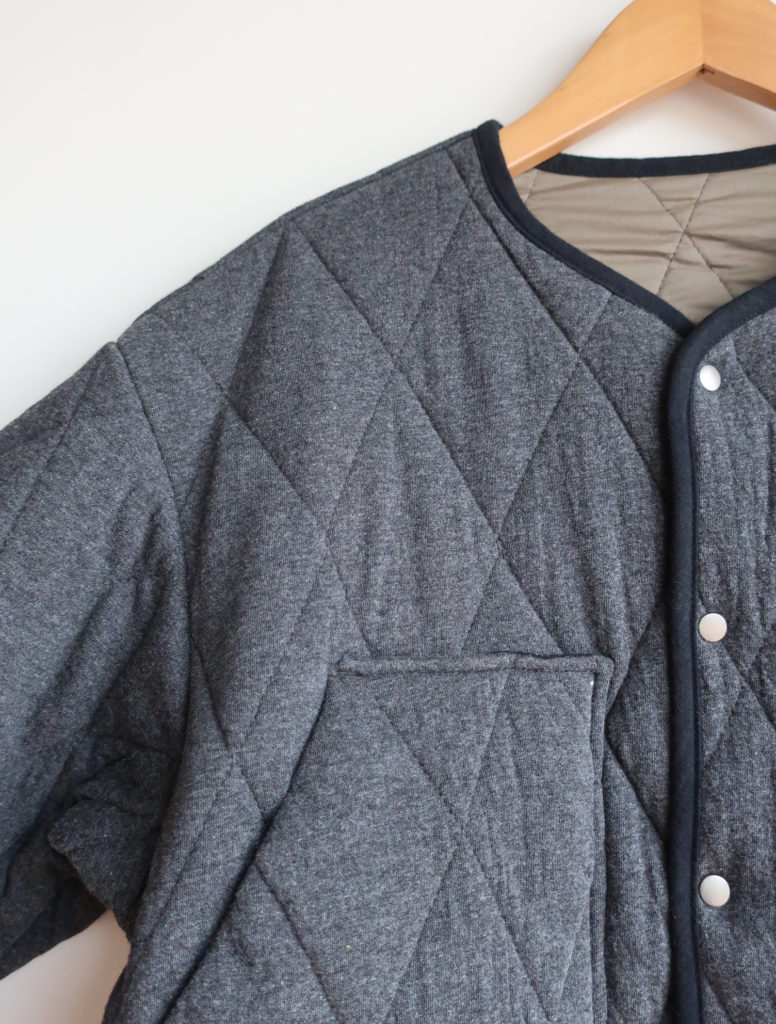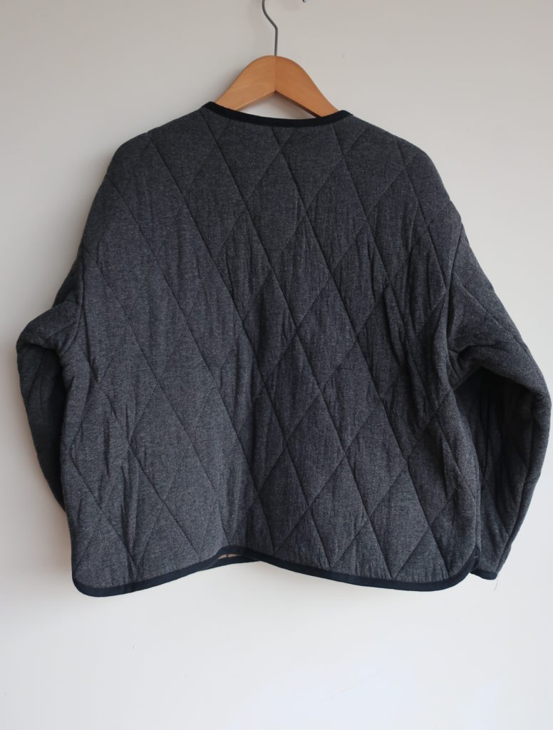 LAITERIE 接結キルト2wayカーディガン(sold out) 2025.10.032025.12.19 14,800円(税込16,280円) col.チャコール杢sold 綿100%(中綿:ポリエステル100%) 幅55cm 丈55cm LC25301 ご注文