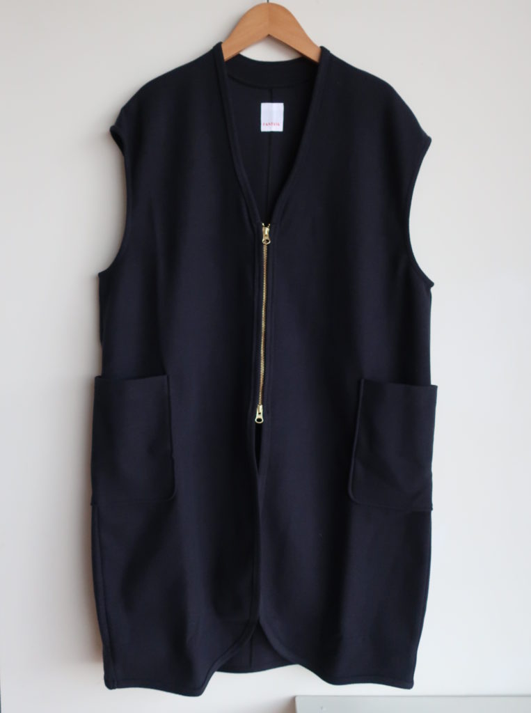 ★SALE faneuil ニードルステッチロングベスト 2025.09.012026.01.22 ベージュ ネイビー 16,000円(税込17,600円)→税込10,560円 col.ベージュ/ネイビーsold ポリエステル80% アクリル10% レーヨン10% 幅58cm 丈98cm made in Japan F2325344 ご注文