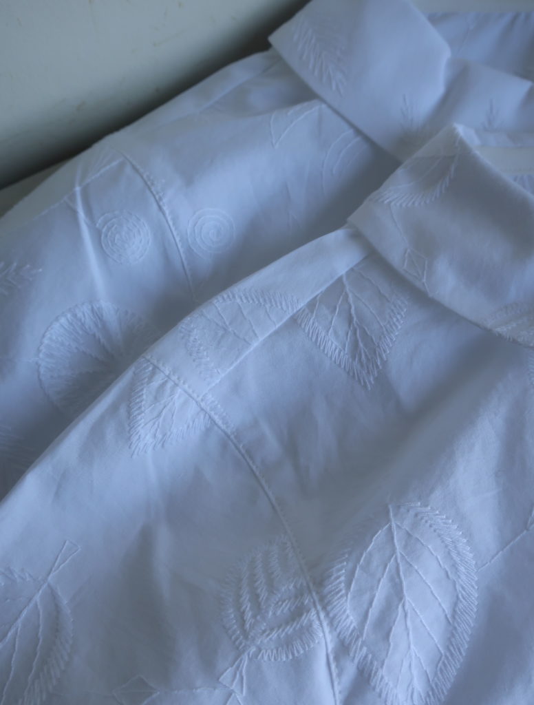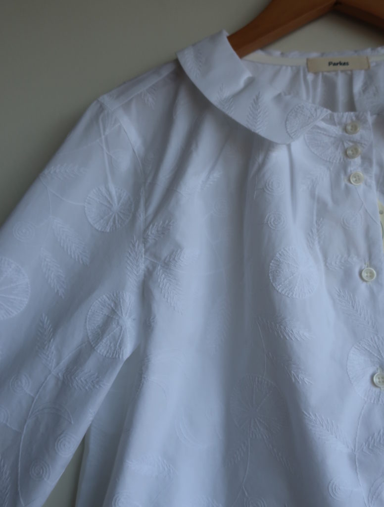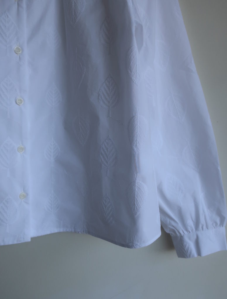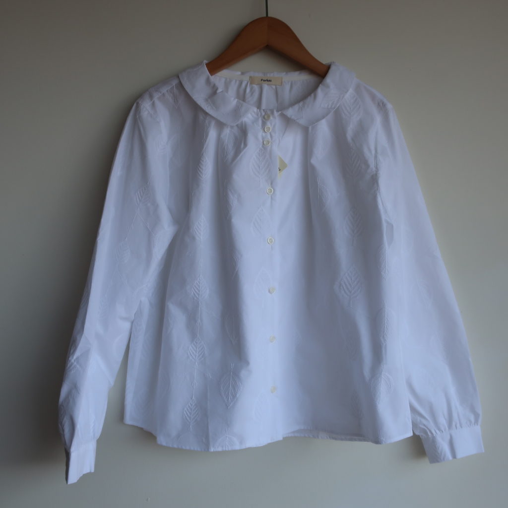 Parkes エンブロイダリーフラットカラーギャザーブラウス 2026.02.012026.02.04 葉っぱ 木の実ツタ 12,000円(税込13,200円) col.葉っぱ/木の実ツタ 綿100% 幅50cm 丈58cm made in Japan PN2611005 ご注文