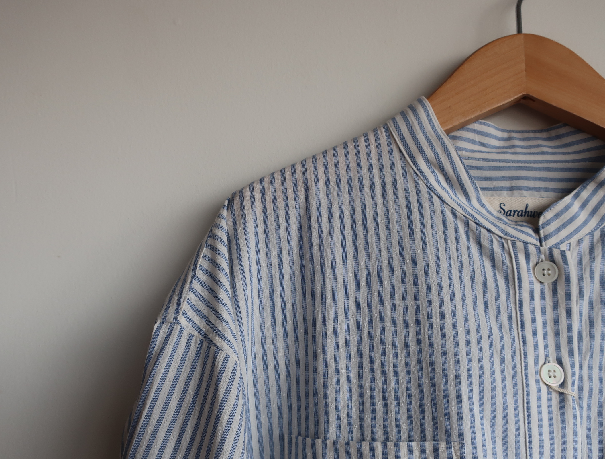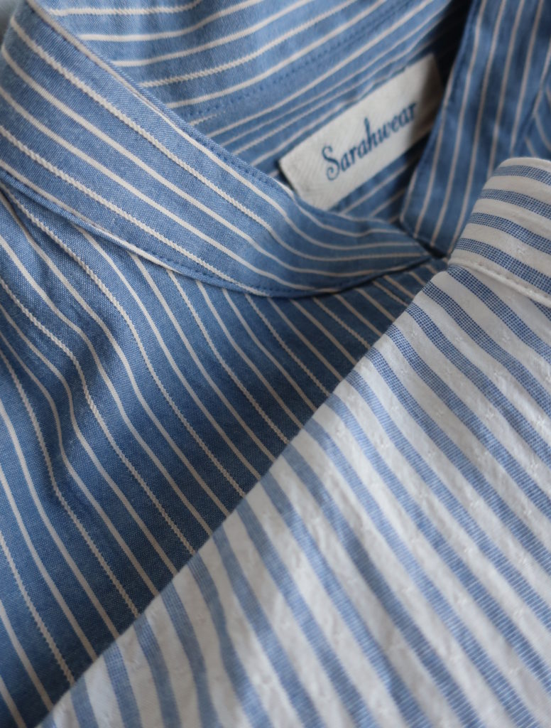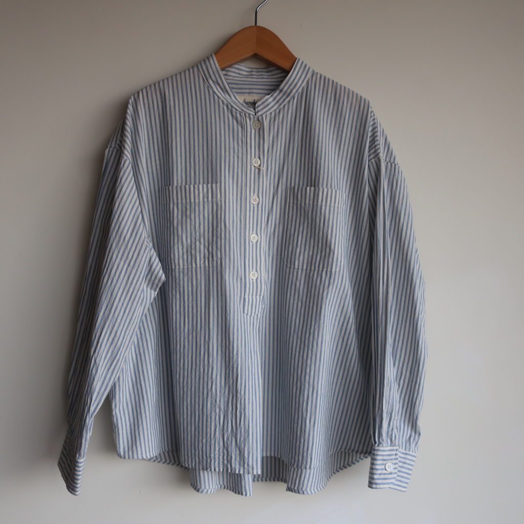 Sarahwear ドビーストライプバリスタシャツ 2026.02.012026.02.04 オフホワイト ブルー 15,800円(税込17,380円) col.オフホワイト/ブルー 綿100% 幅61cm 丈63-68cm made in Japan C53077 ご注文