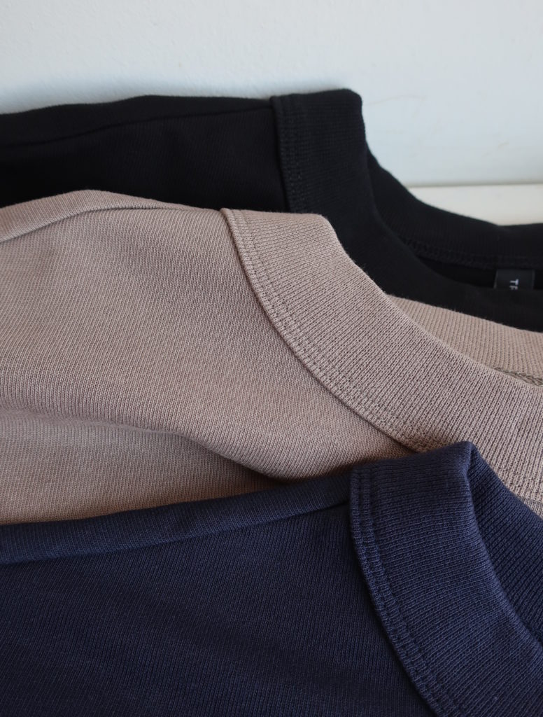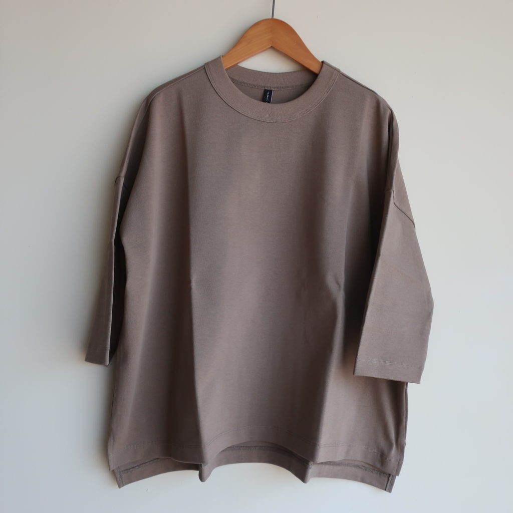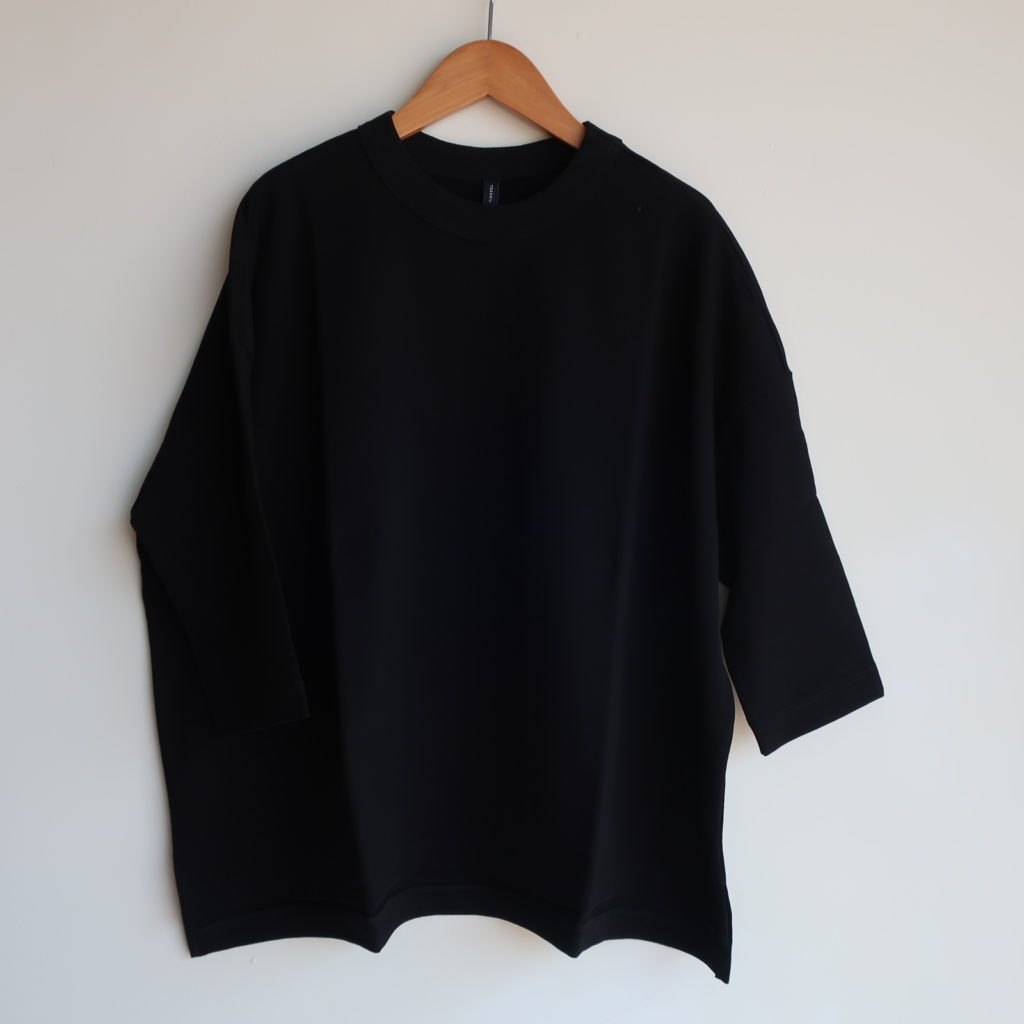 TRAVAIL MANUEL 度詰天竺7分袖プルオーバー 2025.08.292025.10.06 ブラック モカ ネイビー 9,000円(税込9,900円) col.ブラック/モカ/ネイビーsold 綿100% 幅68cm 丈59-64cm made in Japan 2009-53 ご注文