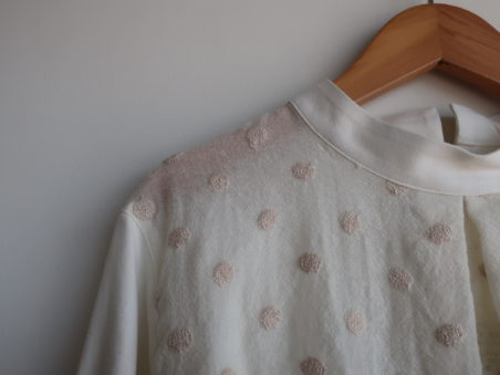 Parkes Parkes ウールガーゼドット刺繍スタンドカラープルオーバー
