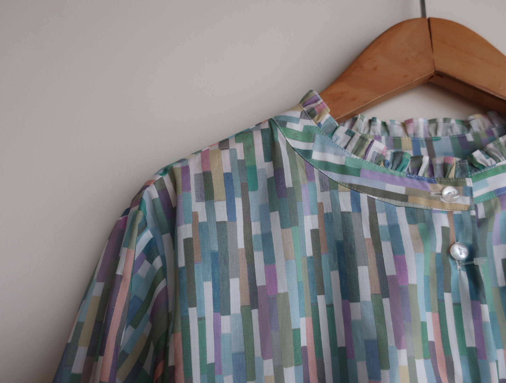 ★SALE J.Sloane リバティParis Postcardスタンドフリルブラウス