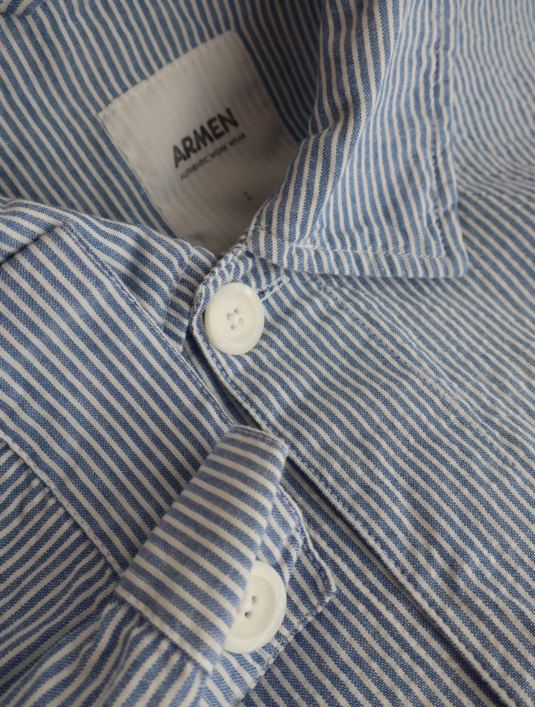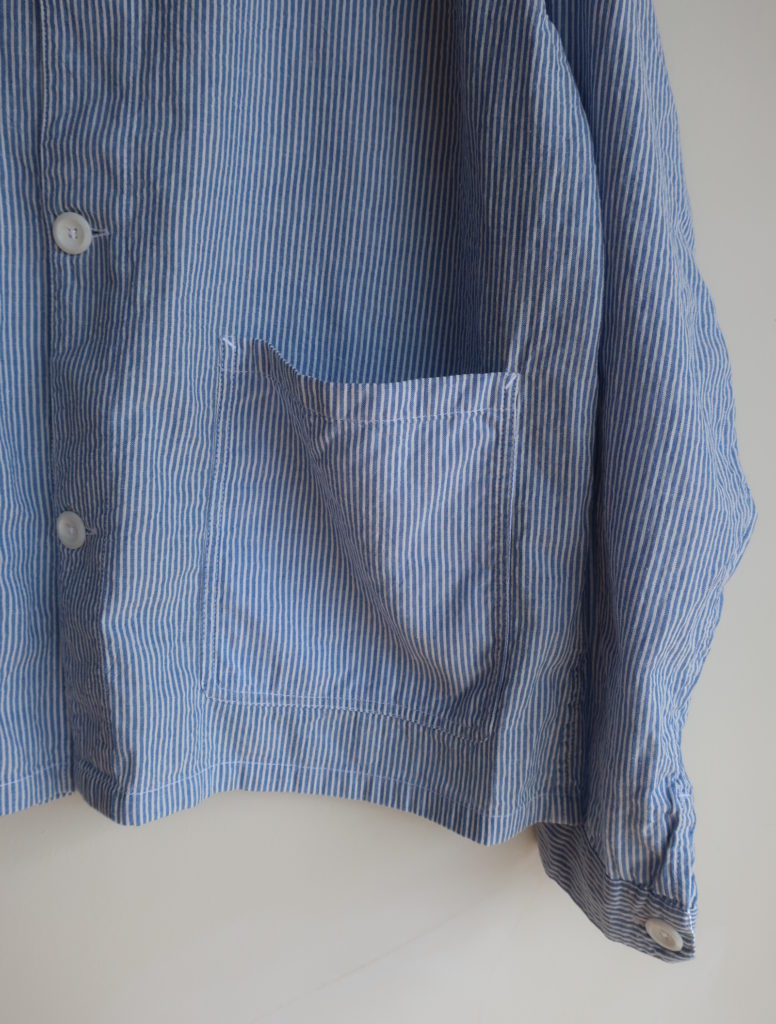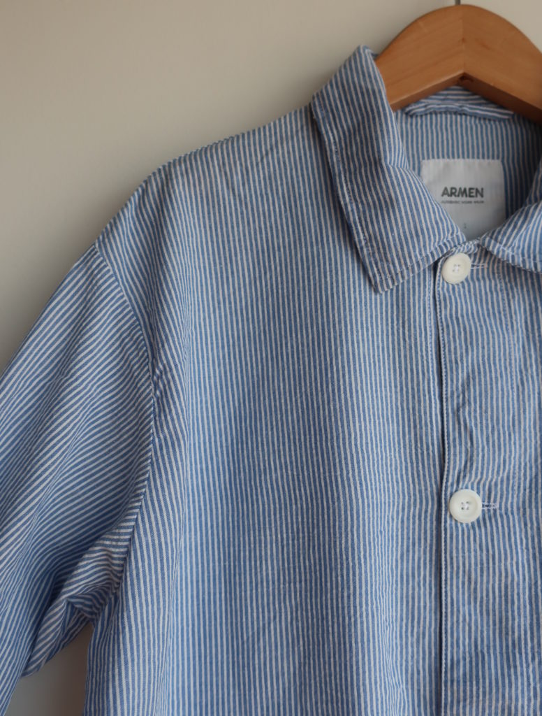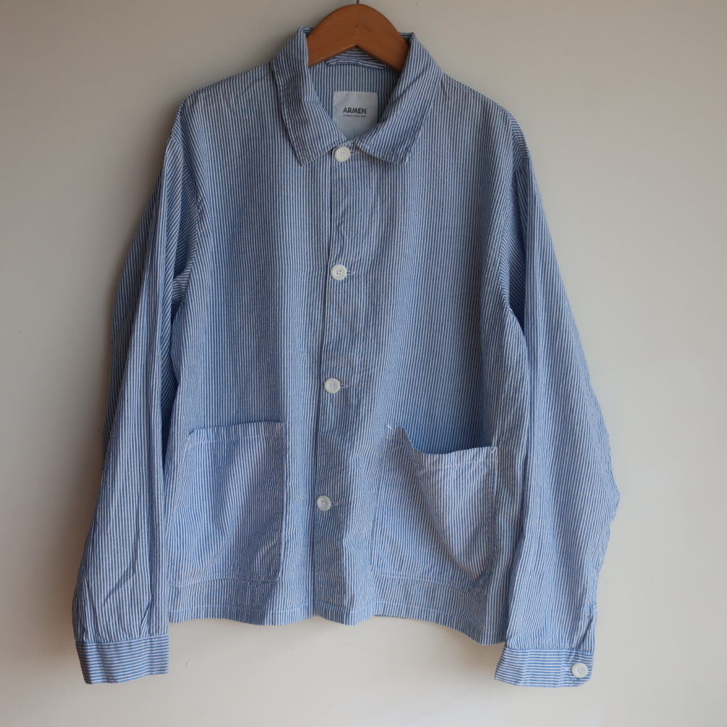 ARMEN シアサッカーストライプワークジャケット 2026.03.15 16,000円(税込17,600円) col.ブルー×ホワイト 綿100% 幅55cm 丈63cm 薄手のシャツジャケットです INAM2631S ご注文