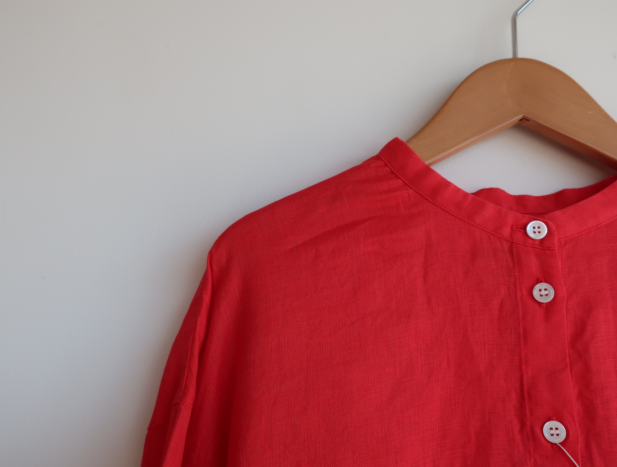 Vent d’ouest リネンキャンバスシャツ 2026.02.20 レッド ネイビー 17,500円(税込19,250円) col.レッド/ネイビー リネン100% 幅58cm 丈59-66cm made in Japan VE19606 ご注文